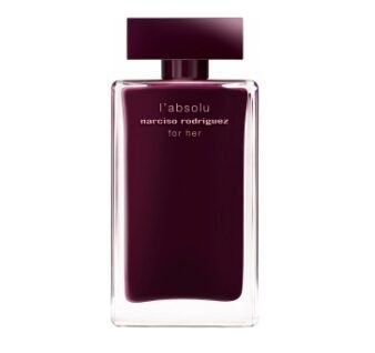 - Narciso Rodriguez for Her L’Absolu, una versión más profunda y seductora del almizclado Narciso Rodriguez for Her original. Esta nueva composición está dirigida para una mujer femenina, elegante, fuerte y apasionada. La composición abre con intensos acuerdos florales de nardo y absoluto de jazmín. El corazón mantiene el inconfundible almizcle característico de la línea Narciso Rodriguez for Her. La firma de la fragancia la componen una mezcla de notas de cálido ámbar y notas leñosas de pachulí y sándalo. El frasco mantiene la forma original pero esta vez toma un color burdeos oscuro.